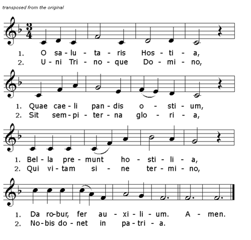 Once the presider has reached the front of the altar and kneels, all will singing the Salutaris.